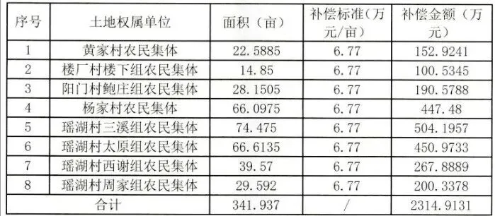 从补偿标准来看,本次征地统一按照6.77 万元 / 亩执行,总土地补偿费达2314.9131 万元;其中杨家村有 0.6015 亩土地曾在 2012 年学苑路项目中完成补偿,扣除该部分后,实际需补偿金额约 2313.07 万元,补偿资金足额落实,保障被征地村组的权益。