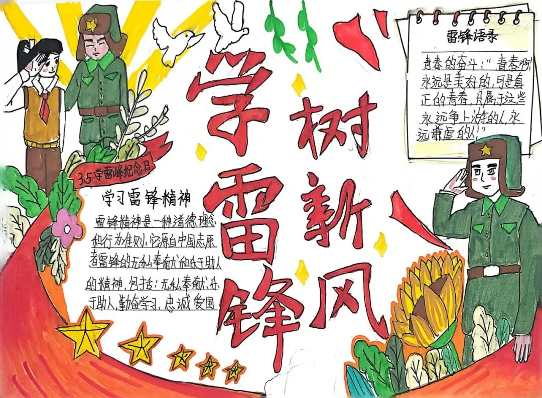 同学们以笔为媒,绘雷锋事迹、书志愿初心,作品主题鲜明、创意新颖,充分展现新时代少年的责任与担当。