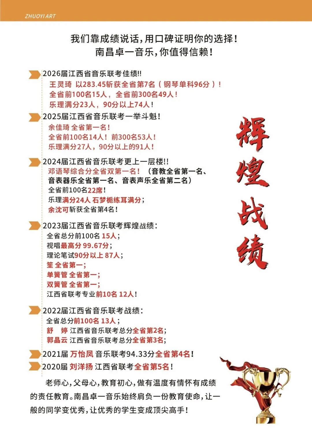 >南昌卓一音乐2027届招生简章 |乐启新程,因你不凡,逐梦音乐之路,从这里起航!