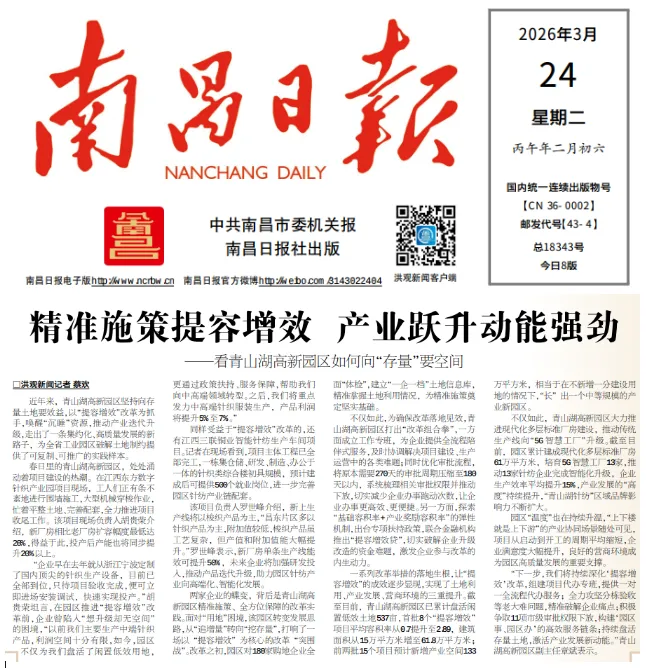 近年来,青山湖高新园区坚持向存量土地要效益,以“提容增效”改革为抓手,唤醒“沉睡”资源,推动产业迭代升级,走出了一条集约化、高质量发展的新路子,为全省工业园区破解土地制约提供了可复制、可推广的实践样本。