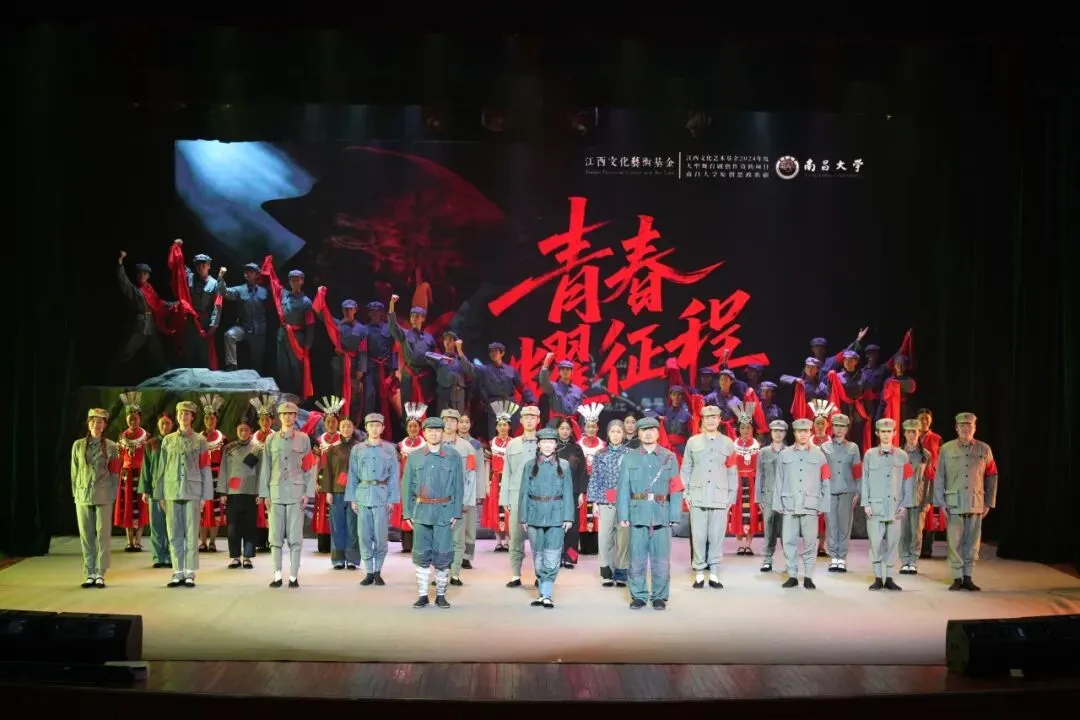 《青春耀征程》由南昌大学艺术学院师生历时1年多潜心创排、精心打造,以红军长征伟大史诗为背景,以歌剧为主体,融音乐、舞蹈、戏剧等多种表演艺术形式于一体,通过故事化叙事、互动化表达、可视化呈现、沉浸式演绎,生动讲述了以常怀红、赵志刚为代表的青年大学生在长征的革命壮举中逐渐成长为信念坚定、对党忠诚、意志坚强的共产主义战士的感人故事,深刻诠释了长征精神的思想内核和时代价值,是一部兼具思想高度、艺术温度与情感深度的艺术佳作。