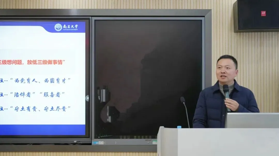 3月23日下午,南昌大学“香樟研工”辅导员素质能力提升计划培训班(第十四期)在前湖校区建工楼B421举行。工程建设学院党委副书记沈松作专题授课,辅导员周宗来主持。
