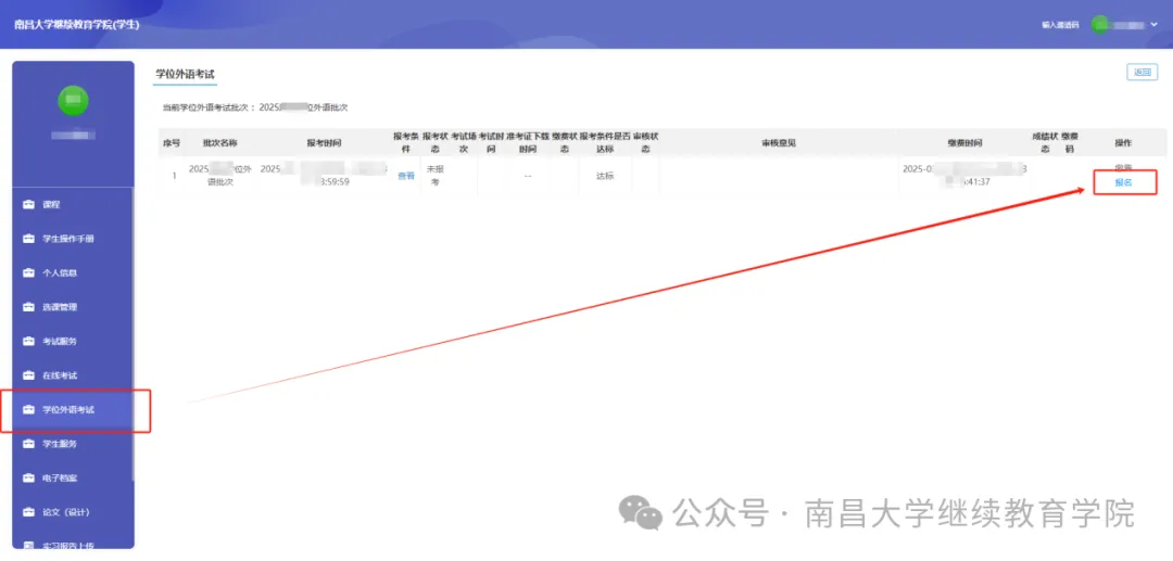 在规定时间内访问“南昌大学学位外语水平考试报名系统(自考)”