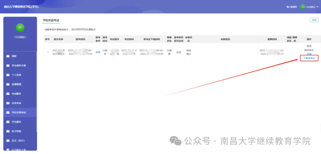 温馨提示:各位通过学位外语考试的南昌大学高等教育自学考试本科生,请于毕业后三个月内主动向学校申请参加学位专业课程加试考试,联系电话:0791-88305079(自考科),请关注南昌大学继续教育学院官网及微信公众号。