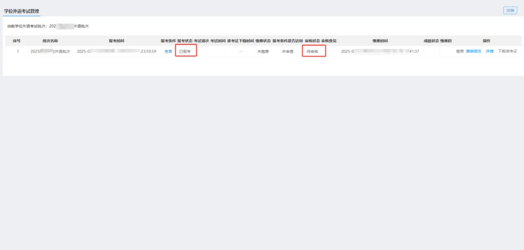 页面报考状态为“已报考”,审核状态为“待审核”则代表报名成功