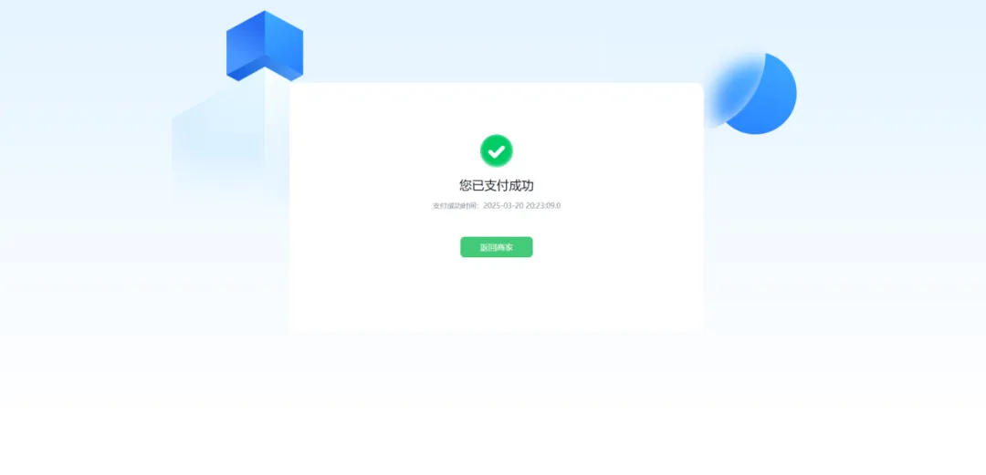 支付完成会显示如下页面: