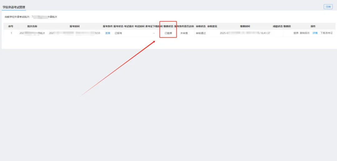 缴费完成后也可返回个人空间学位外语考试页面,查看缴费状态是否已变为“已缴费”。