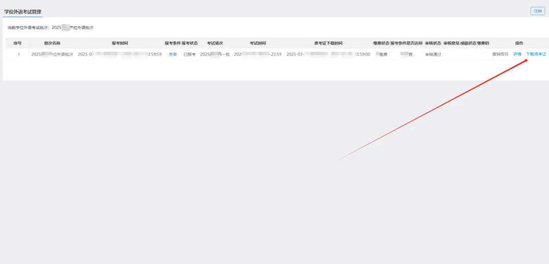使用身份证号和姓名登录后,可以查看考试信息以及准考证下载打印