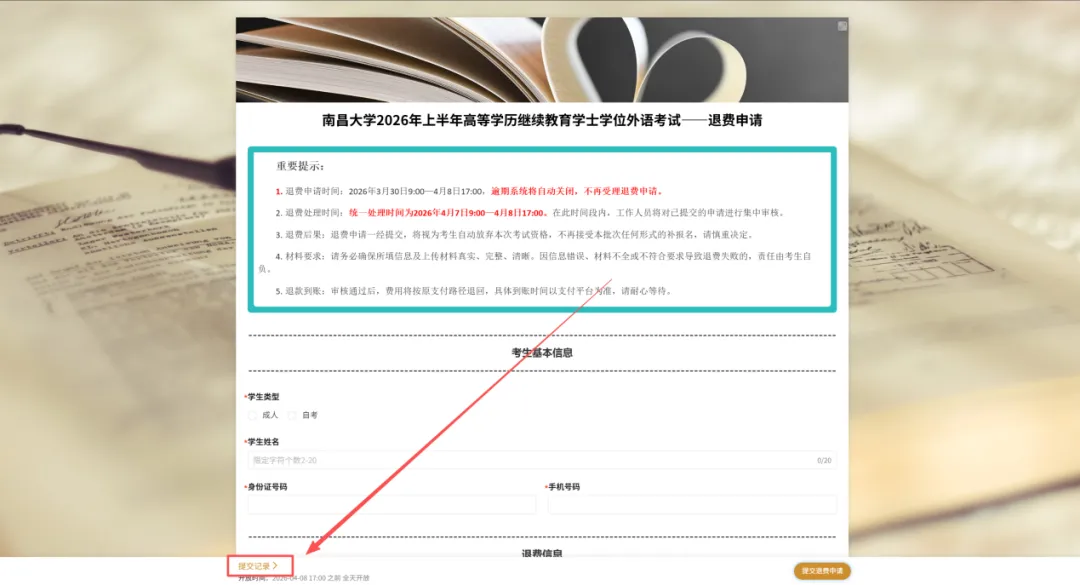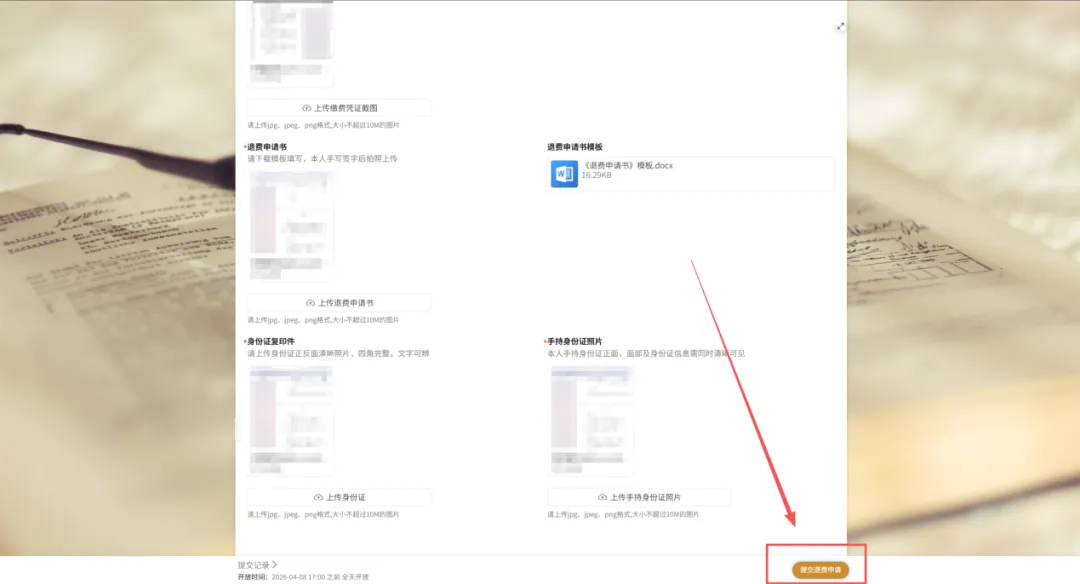 (4)确认提交的信息无误后,点击下方“提交退费申请”,提交完成后,耐心等待审核。