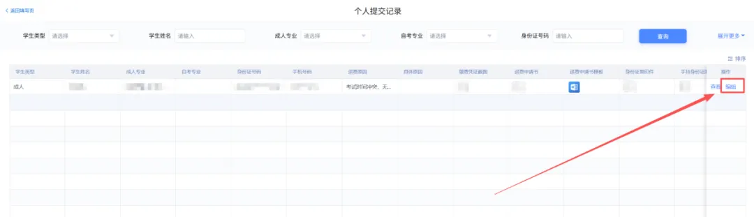 若学生提交的内容需要修改,可以登录访问申报系统,点击下方“提交记录”,查看已提交信息进行编辑。