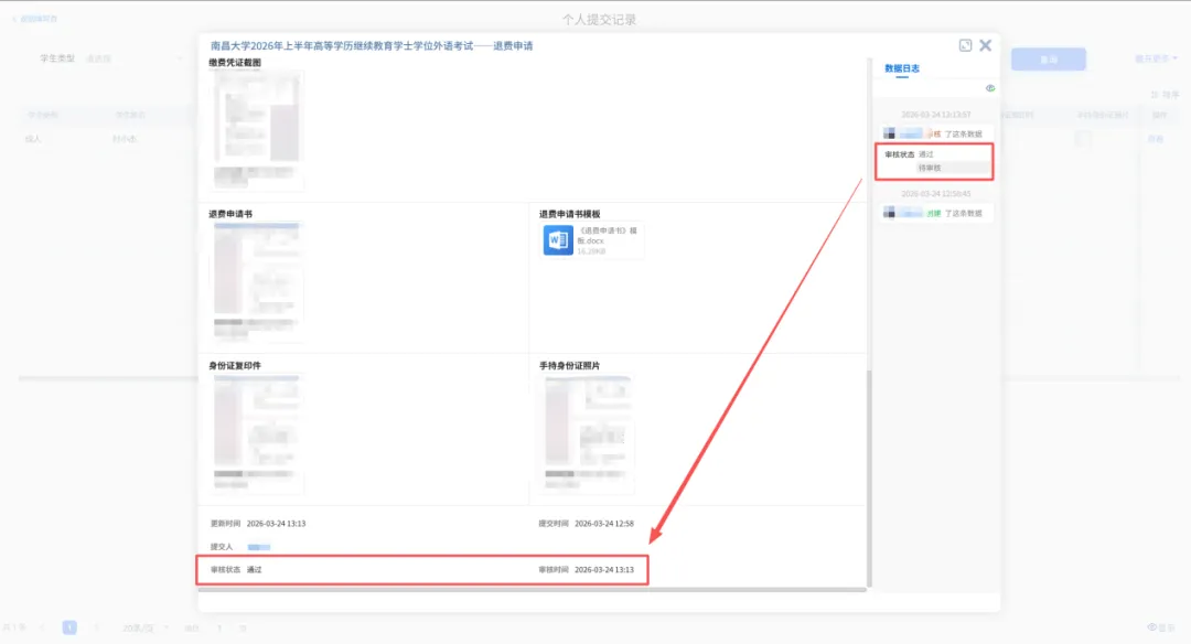 注:若退费申请学校已审核通过则无法再进行修改及撤回!