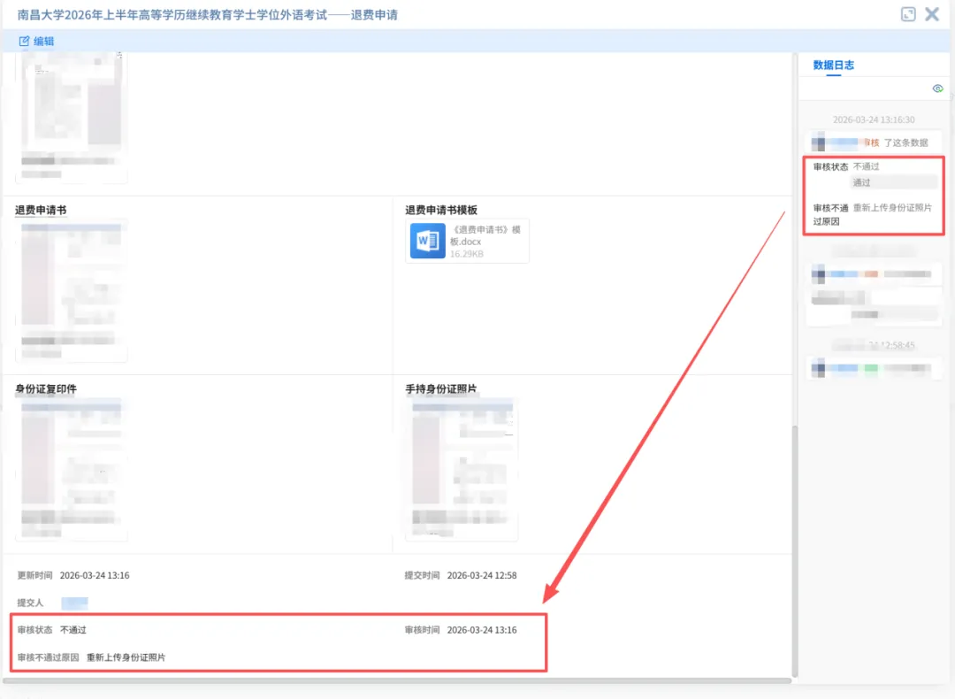 审核不通过:查看不通过原因,并可按照步骤3进行修改后重新提交