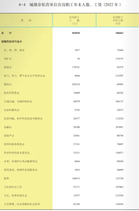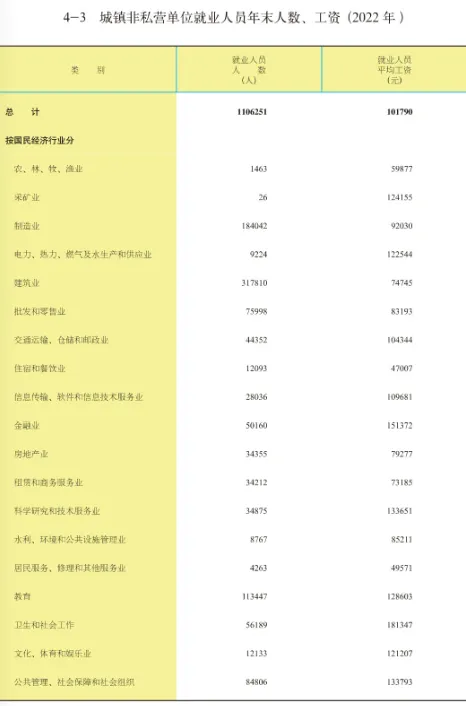 南昌市统计局 国家统计局南昌调查队编著的《南昌统计年鉴.2023》,公布了2022年南昌市城镇单位就业人员和在岗职工平均工资情况: