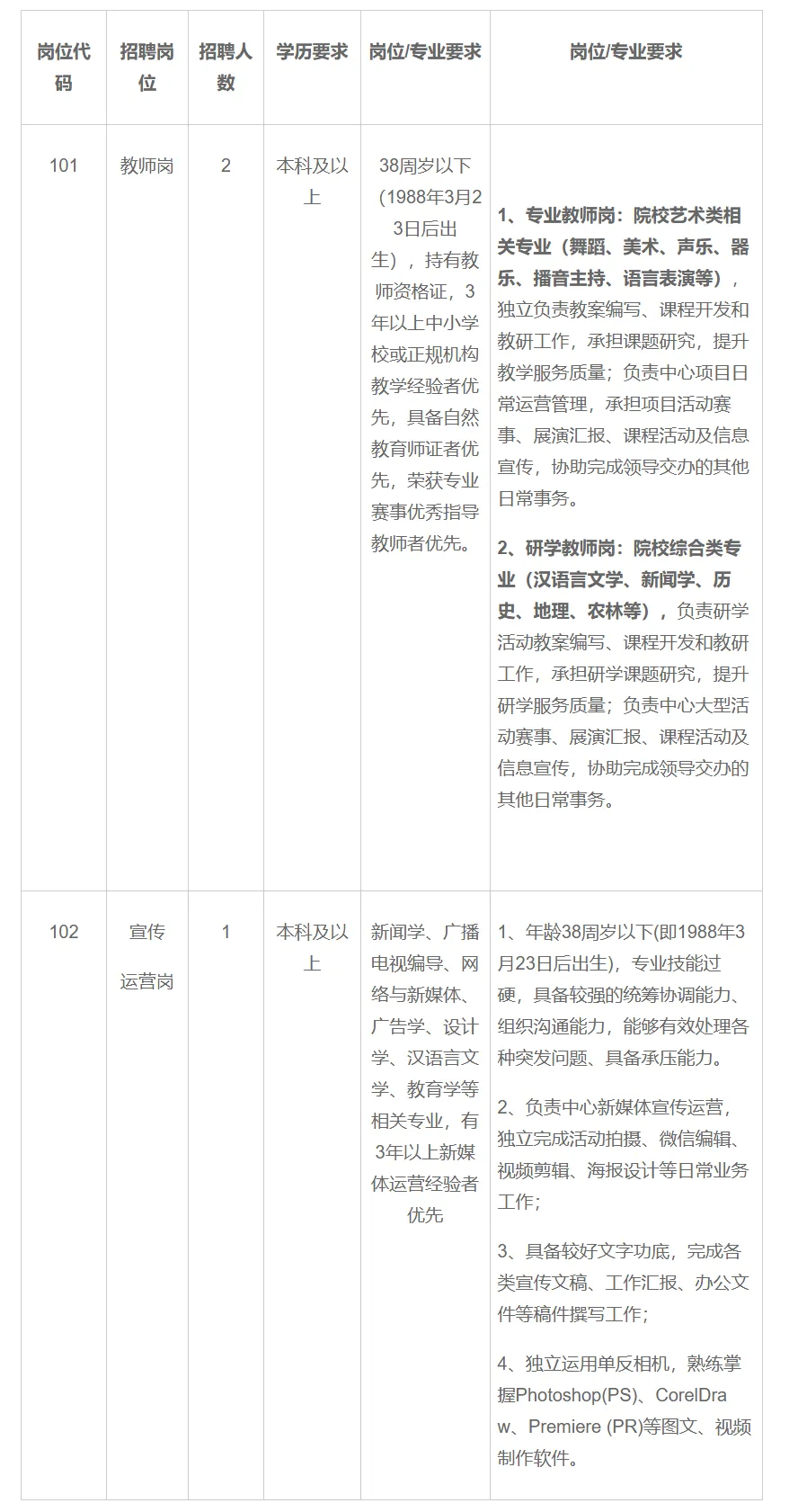一、招聘人数及岗位要求