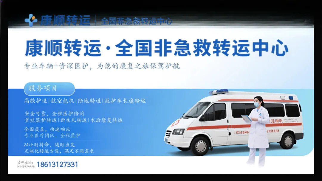 我们坚持 “生命至上,专业护航” 。每一次出发,都是对生命的郑重承诺。康顺转运,以专业设备为盾,以资深团队为矛,以周全方案为轨,守护每一位托付于我们的患者,平安、舒适地抵达彼岸。