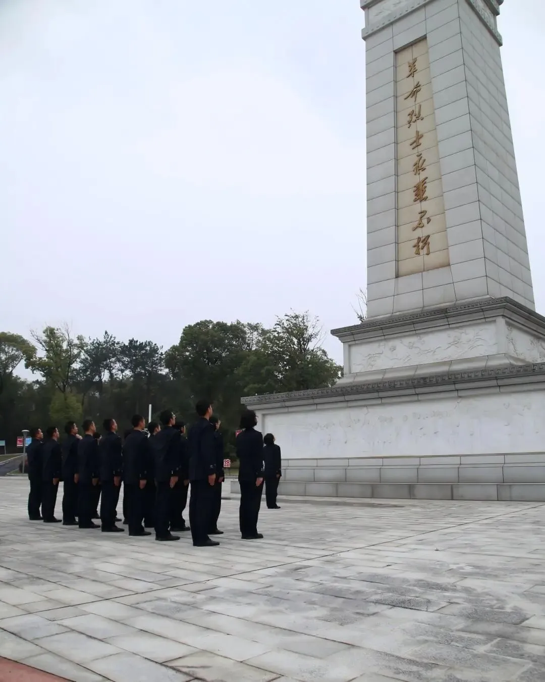 活动现场庄严肃穆。队员们整齐列队,瞻仰革命烈士纪念碑,神情庄重,深切缅怀为国家和人民献出宝贵生命的革命先烈。在纪念碑前,全体队员肃立,齐声诵读《站在烈士墓前》,铿锵有力的朗诵声在陵园上空回荡,既表达了对英烈的崇高敬意与深切追思,也彰显了传承英烈精神的坚定信念。