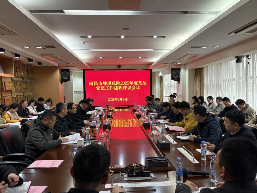 3月24日,南昌市城规总院召开2025年度基层党建工作述职评议会议。总院集团党委副书记、总经理徐勇清主持会议并讲话,市建投集团党群工作部副主任郭燕到会指导。总院集团领导班子成员、各党支部书记、党群人事部负责人以及基层党员干部和群众代表50余人参加会议。