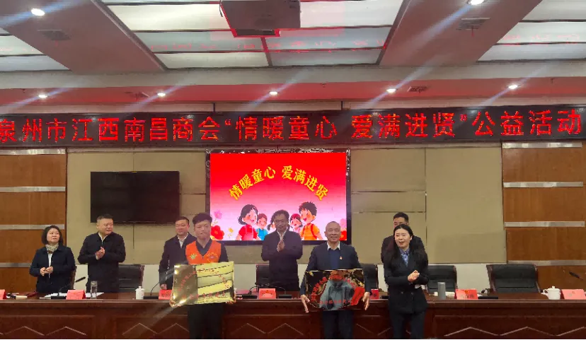 3月21日,民革进贤小组联合泉州市江西南昌商会开展“情暖童心 爱满进贤”公益活动,同步在进贤县会议中心举行社会服务共建授牌仪式。县委书记徐强,县人大常委会主任郭保庚,县委常委、统战部部长曾晋,县人大常委会副主任、民革南昌市委会副主委、民革进贤小组组长陈灵燕出席仪式,泉州市江西南昌商会会长曹跃根及县委统战部、县民政局等相关同志参加。