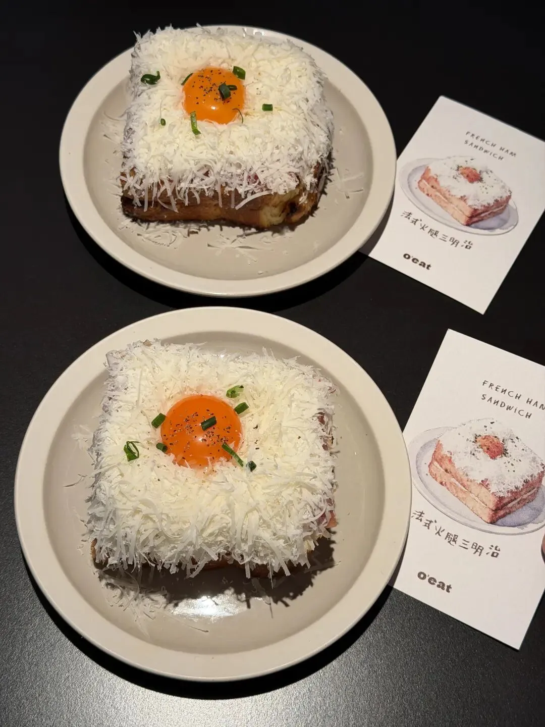 强推法式火腿三明治🥪,流心蛋配上拉丝芝士,咸香浓郁超满足。