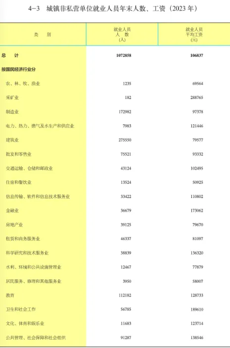 2023年南昌市城镇非私营单位就业人员年平均工资106837元;其中,在岗职工年平均工资111006元。
