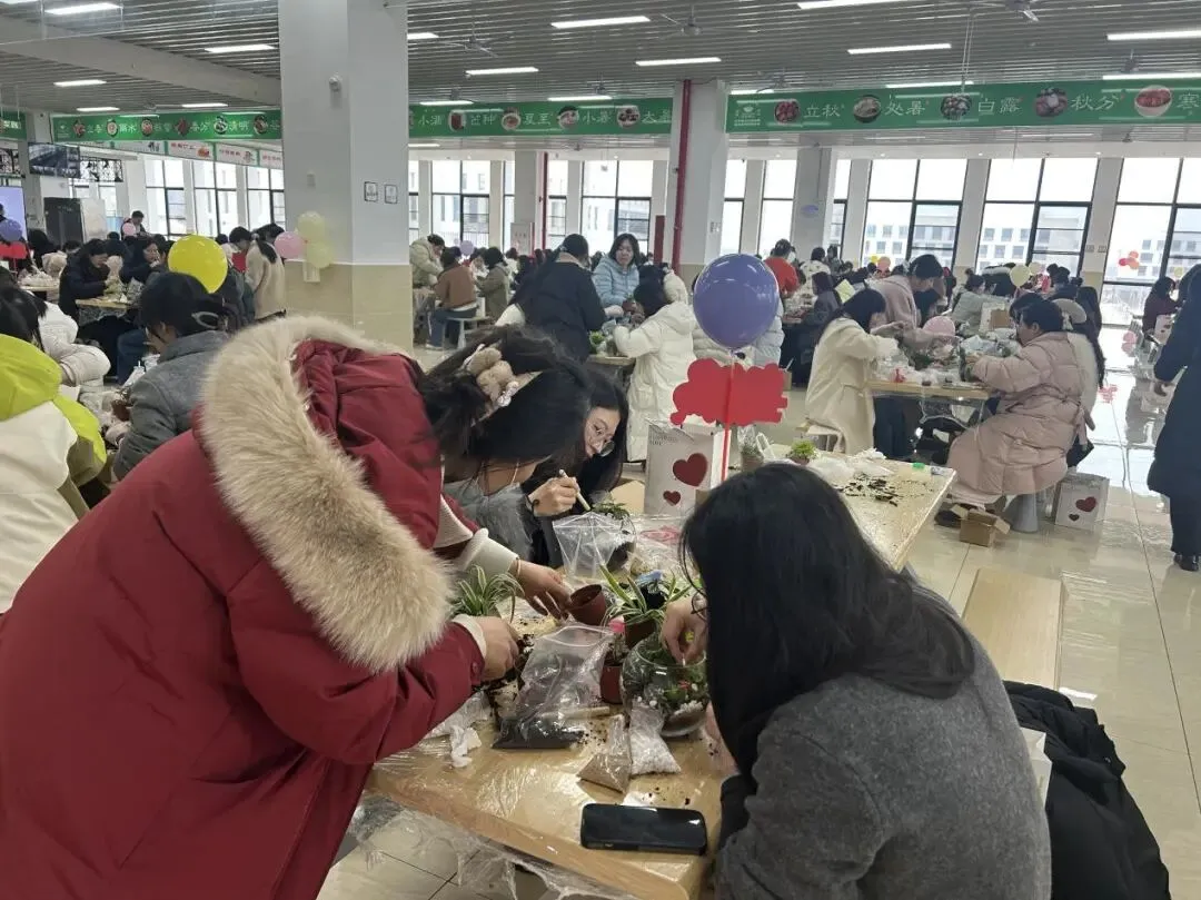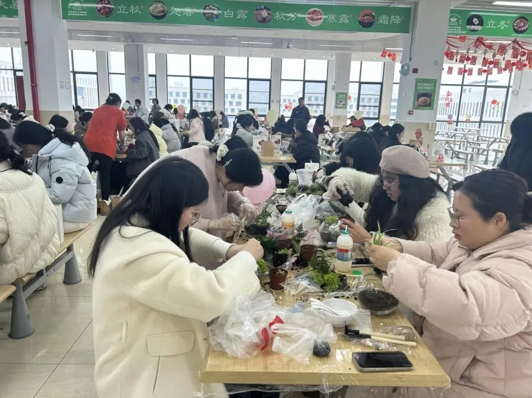 九龙湖校区的活动在一食堂三楼温情启幕,校领导莅临活动现场,向全体女职工致以节日的美好祝福,与大家一同参与活动,感受节日氛围。活动设置包汤圆、DIY植物微景观两大环节,现场暖意融融、热闹非凡。包汤圆环节伊始,师傅现场演示和面、揉团、包馅等技巧,讲解细致入微,手把手为女职工们答疑解惑。演示结束后,大家纷纷动手体验,揉面团、包馅料、搓圆子,动作从生疏到熟练,不少教职工还发挥创意,制作出造型别致样式的汤圆,欢声笑语间,一个个圆润饱满的汤圆摆满盒子,不仅承载着元宵的团圆寓意,更凝聚着节日的温馨。