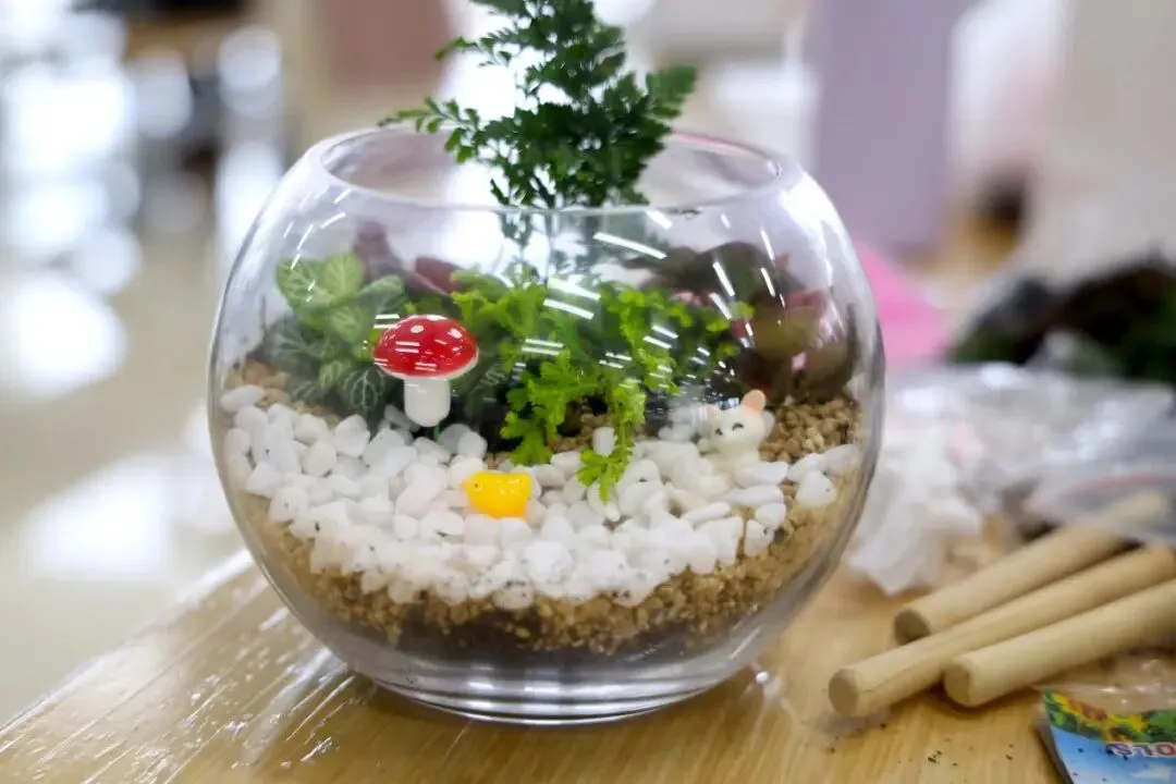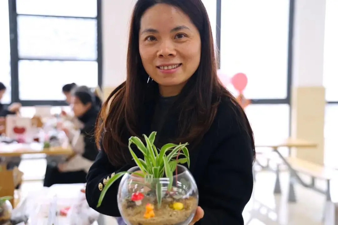 随后开展的DIY植物微景观环节,同样备受欢迎。现场配齐玻璃生态瓶、绿植、苔藓及各类装饰配件,专业达人现场指导制作,同时科普植物日常养护知识。女职工们充分发挥想象力与创造力,将苔藓绿植与各类小装饰等巧妙搭配,层层布置、精心雕琢,将春日美好与巧思创意融入方寸瓶中,制作出独一无二的植物微景观。看着亲手完成的作品,大家成就感满满,纷纷拍照留念,这份专属的手工成果也成为了节日里一份特别的纪念。