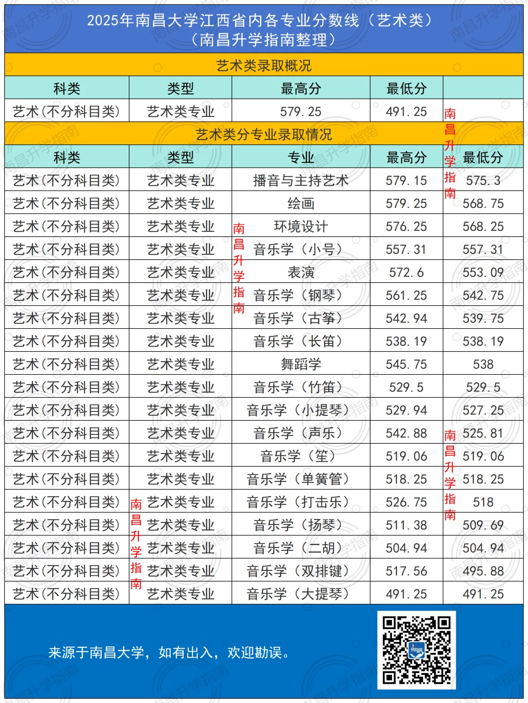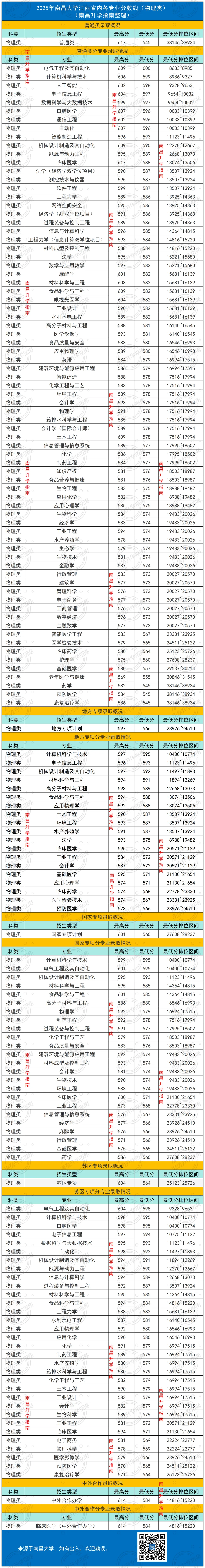 南昌大学2025年各专业分数线