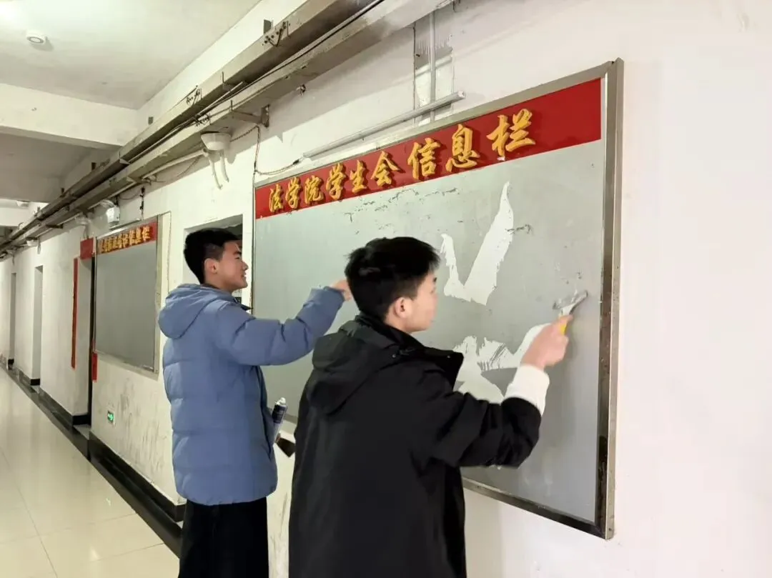三月春风暖,雷锋精神传。为弘扬“奉献、友爱、互助、进步”的志愿精神,营造整洁、舒适的住宿环境,我们面向全体法学院学生招募志愿者,开展“学习雷锋精神”宿舍楼张贴物清理活动。