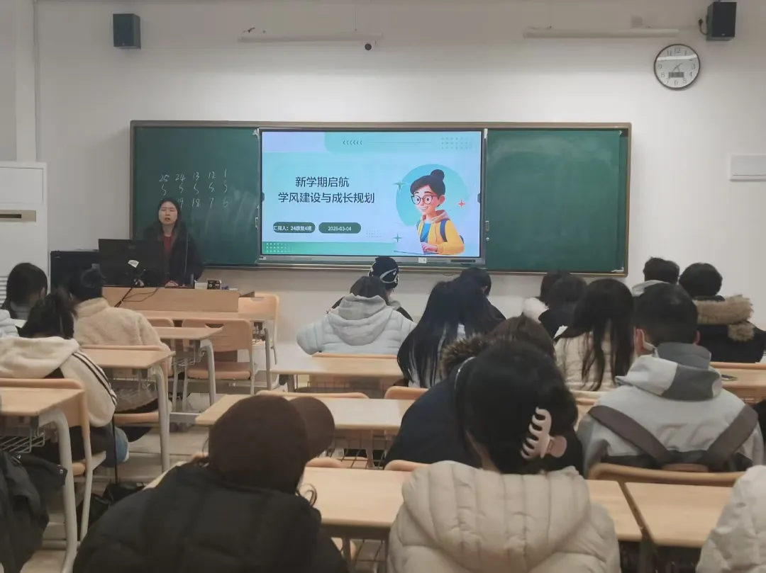 围绕“学风建设怎么做”,她号召全体同学从自身做起、从小事做起,端正学习态度、严守课堂纪律、合理规划时间、主动互助共进,以严谨踏实的作风和积极向上的面貌,在新学期锚定目标、笃行不怠,共同营造班级优良学风,携手走向更好的成长旅程。