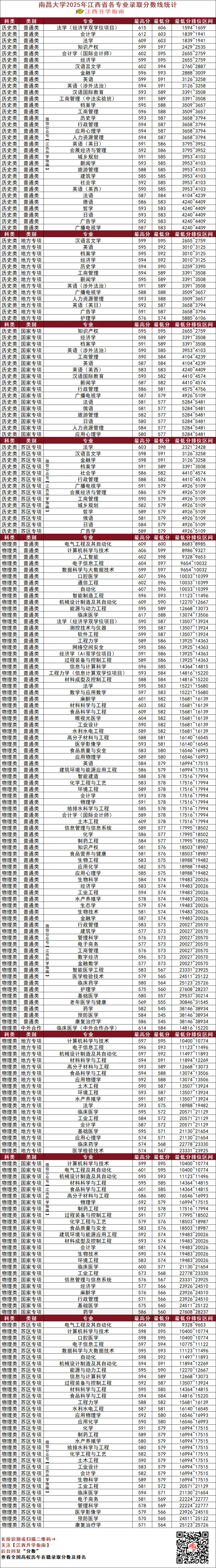 >南昌大学2025年江西省各专业录取分数线统计!