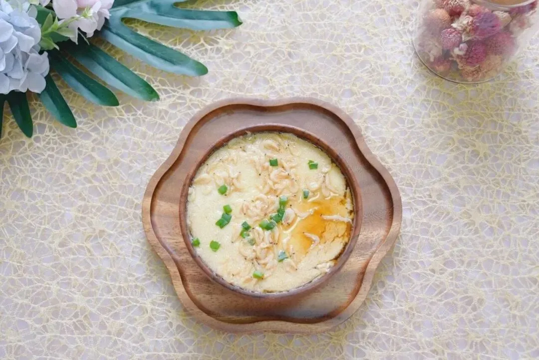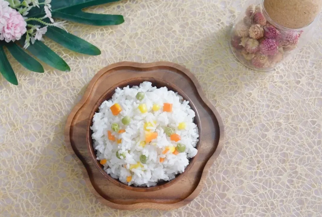胡萝卜焖牛肉、麻油包菜、虾米鸡蛋羹、小米(山姆)香米饭