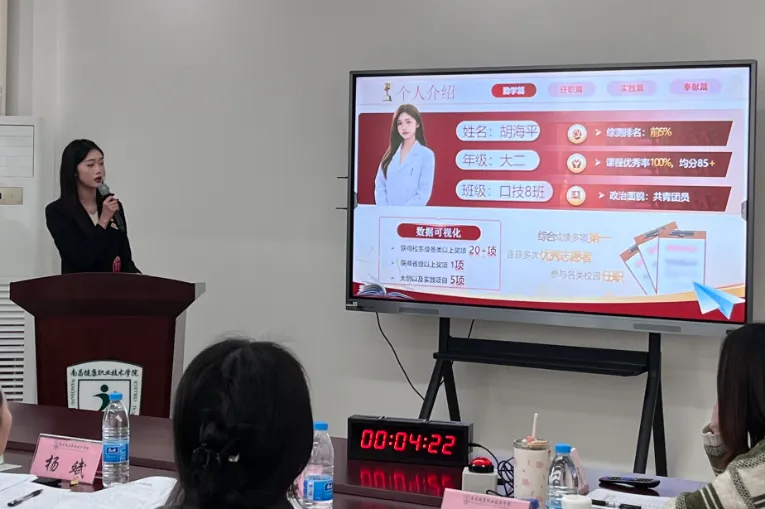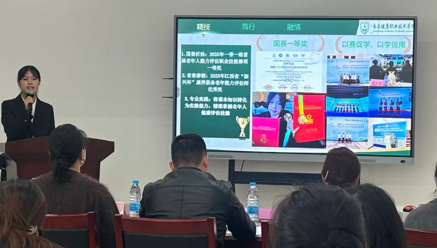 评审现场,各系部优秀候选人依次登台,围绕社会实践、学术科研、自强不息等多个领域各展所长,用实际行动诠释新时代大学生的责任与担当。有的深耕志愿服务一线,用坚守传递责任;有的锤炼专业技能,在省级及以上竞赛中屡获佳绩;有的直面困境自强不息,以坚韧书写青春;还有的在孝老爱亲、创新创业等领域发光发热,尽显南昌健康职业技术学院的学子风采。