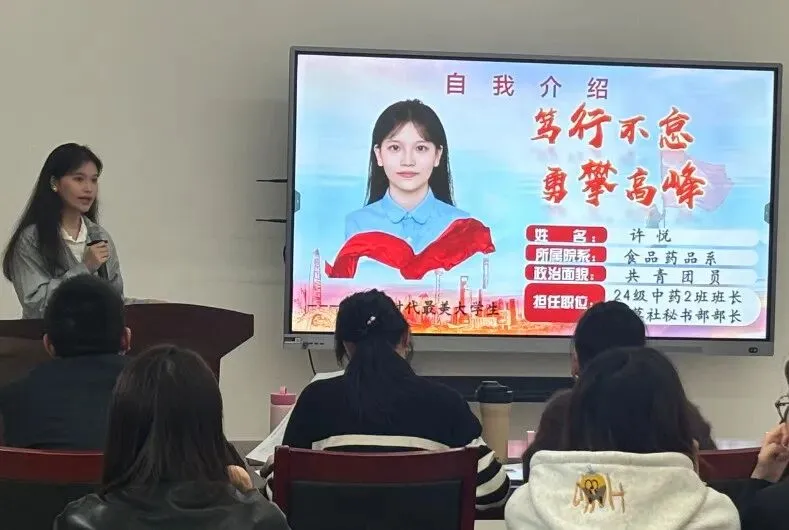 候选人通过PPT演讲,以真挚语言和鲜活案例分享成长事迹,点滴故事中的坚守与担当,既展现了新时代青年的奋进姿态,也是我校立德树人成效的生动缩影。