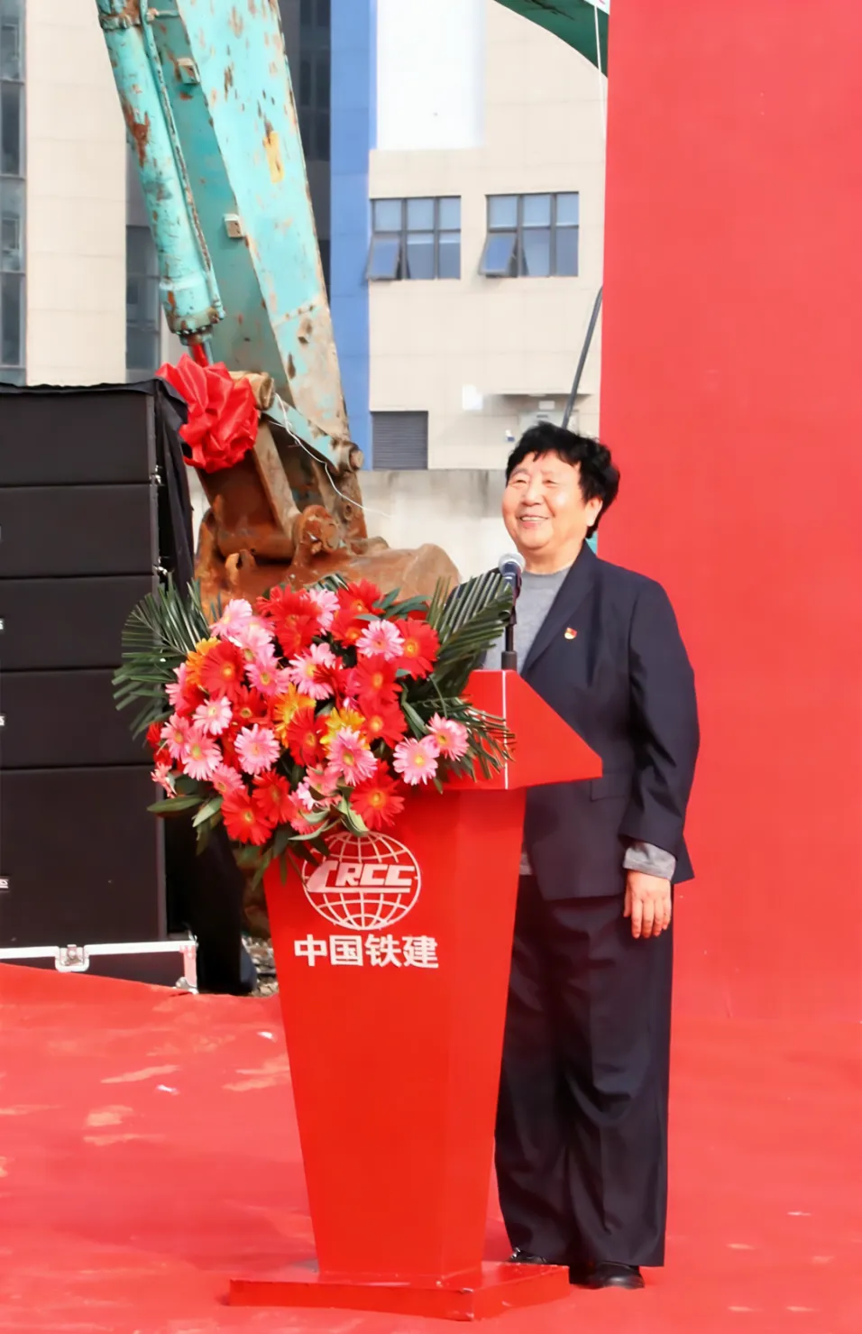 郭磊书记作为施工单位代表致辞,对项目顺利开工表示热烈祝贺,并郑重承诺将充分发扬铁军精神,高标准、高质量、高效率推进项目建设,全力保障项目按期竣工、顺利投产。