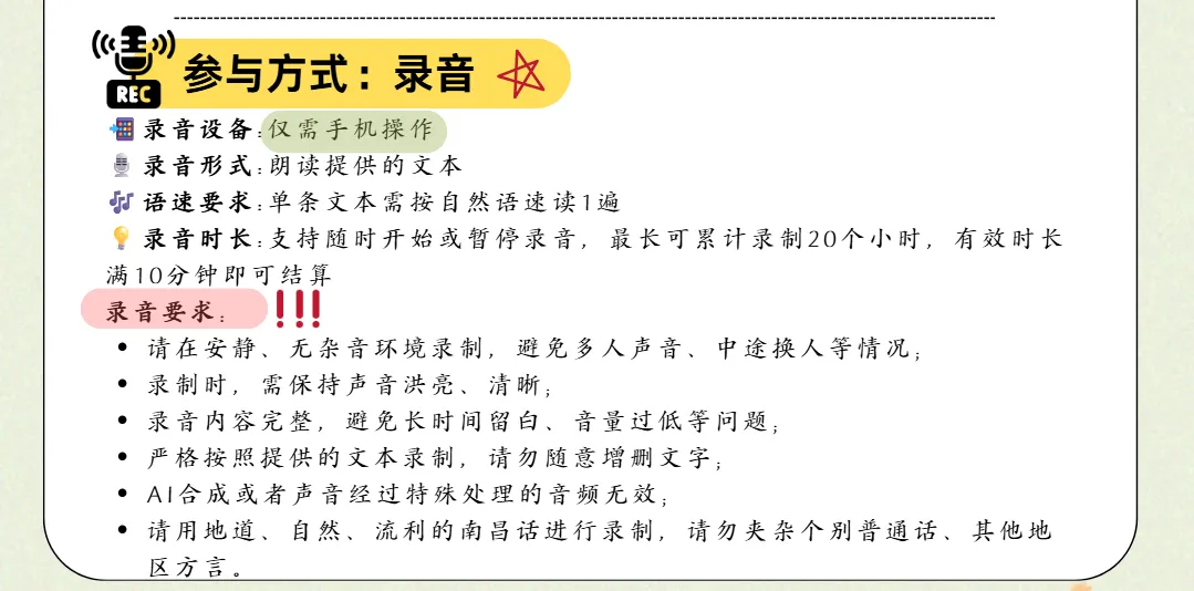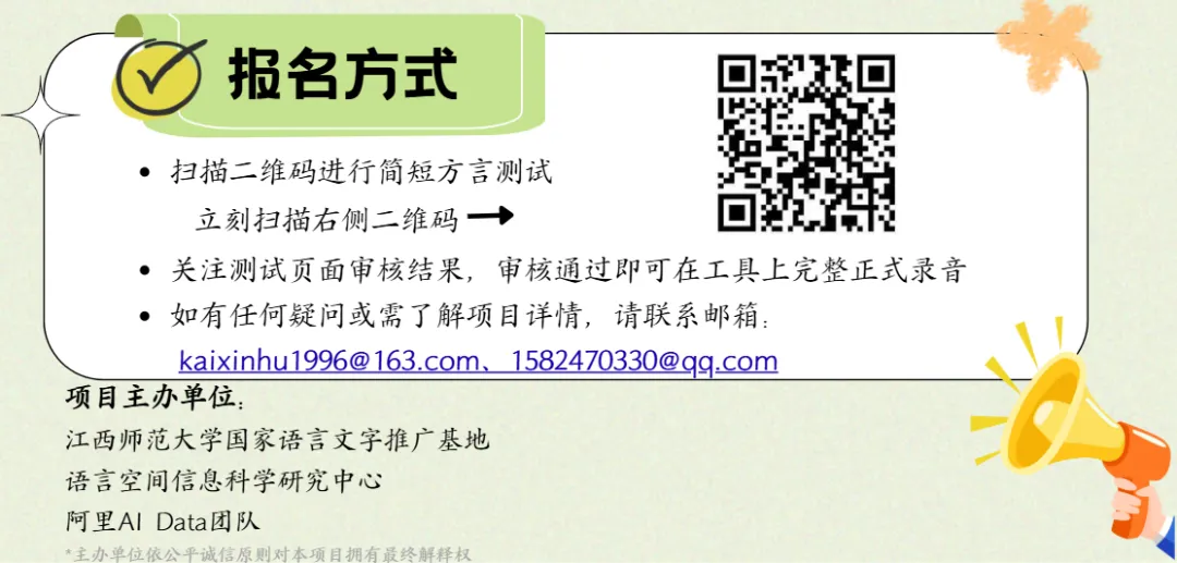 由江西师范大学国家语言文字推广基地、语言空间信息科学研究中心联合阿里AI Data团队发起的“南昌方言数字档案语音采集”公益行动,旨在通过制定统一标准,系统采录地道南昌话,通过建立南昌方言数字博物馆实现永久保存和传承。现面向全城火热招募“南昌方言守护者”!