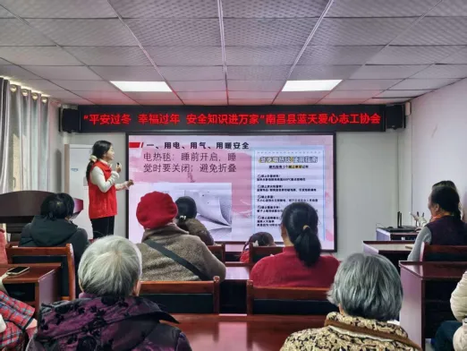 2026年1月28日,重庆大学星火长征实践团与南昌县蓝天爱心志工协会联合开展的“银龄相伴”活动,以“冬季身心安全”为主题,通过故事分享、知识讲解、互动教学等形式,活动为老人们带来了一堂生动而实用的冬季健康安全课。