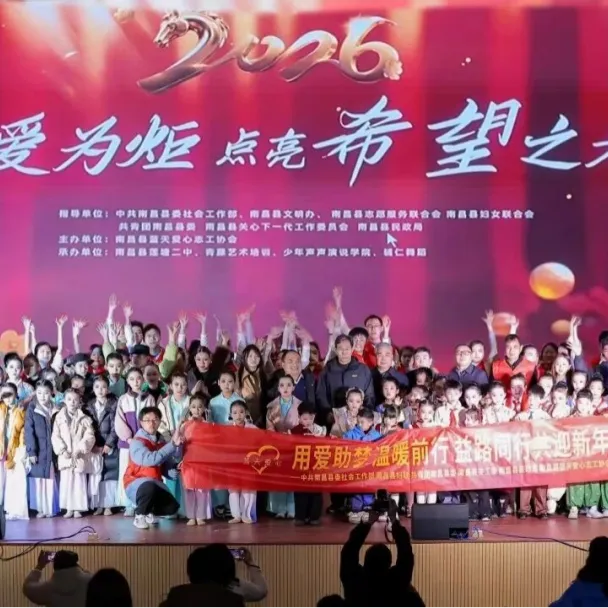 2026年2月2日,由中共南昌县委社会工作部、南昌县文明办、南昌县志愿服务联合会、南昌县妇女联合会、共青团南昌县委、南昌县关心下一代工作委员会、南昌县民政局指导,南昌县蓝天爱心志工协会主办,南昌县莲塘二中、青藤艺术培训、少年声声演说学院、辅仁舞蹈承办的“用爱为炬·点亮希望之光”2026迎新汇演启幕。整场演出均由协会的爱心妈妈、服务对象和协会大学生志愿者共同演绎。特别是自编自演的情景剧《长大后我就成了你》志愿服务爱心故事,现场引起强烈共鸣。