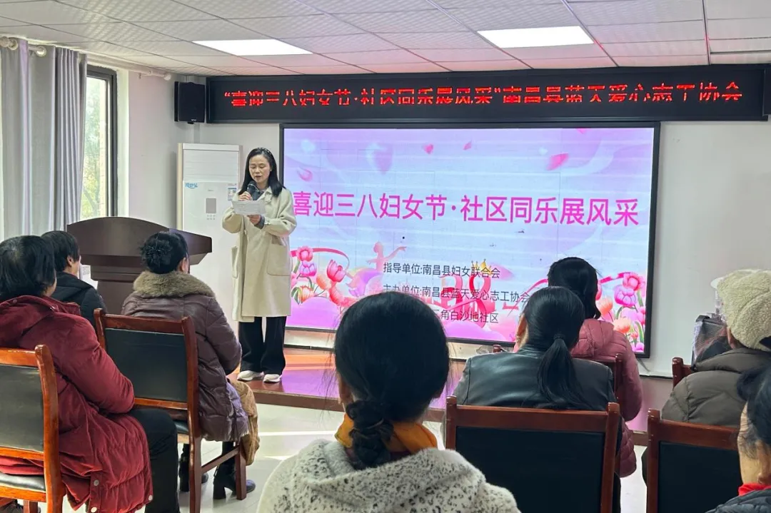 2026年3月7日,南昌县蓝天爱心志工协会在银三角白沙地社区新时代文明实践站举办三八妇女节主题活动,社区女性同胞与协会女性义工欢聚一堂,共度温馨欢乐的节日时光。