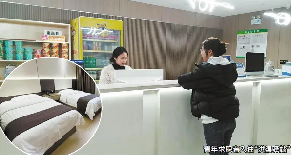 走进位于澄碧湖旁的“洪漂驿站”,简约时尚的装修风格让人眼前一亮。独立卫浴、24小时热水、洗衣机等设施一应俱全,高速Wi-Fi覆盖全楼,公共区域还设置了阅读角、信息发布栏和青年活动空间。驿站选址充分考虑交通便利性,毗邻地铁站和产业园区,让青年求职者能够快速串联起“住宿—面试—生活”的城市动线。