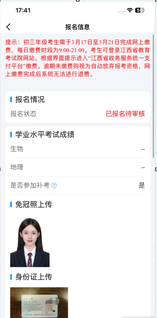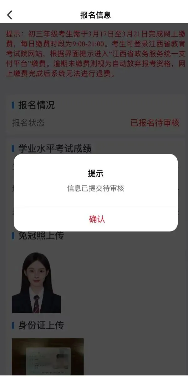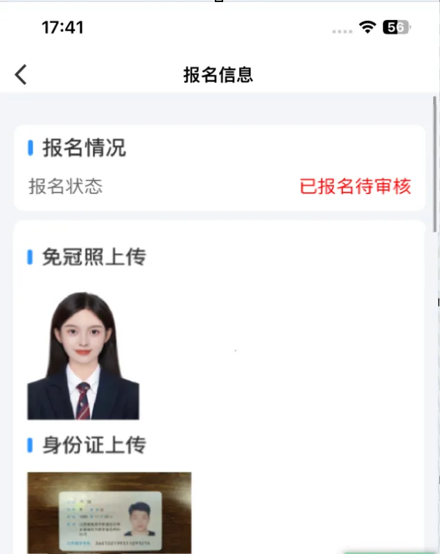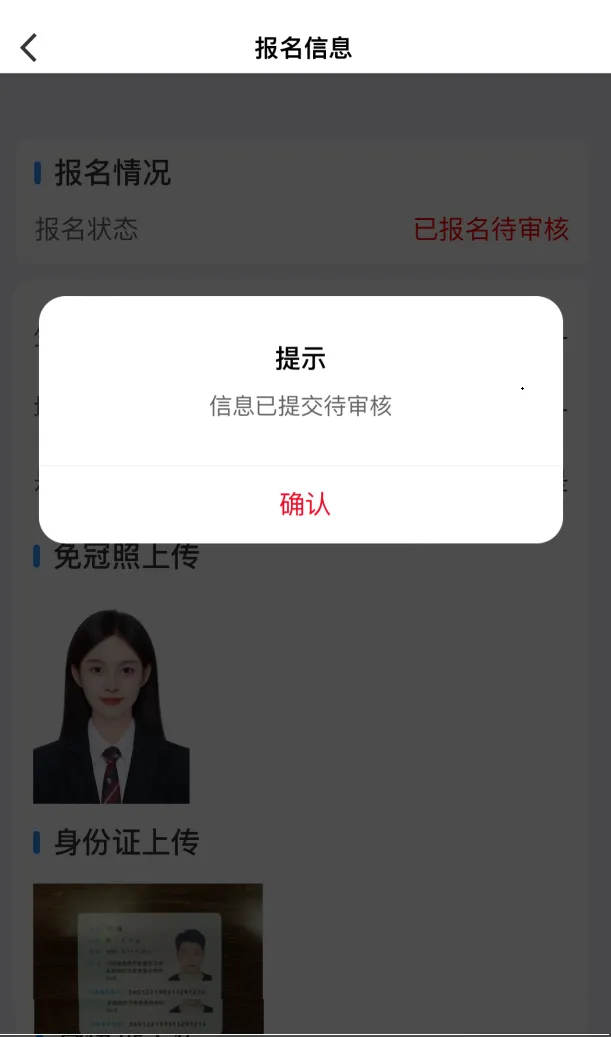 报名信息提交后,系统会跳转到报名信息记录页,查看报名状态。