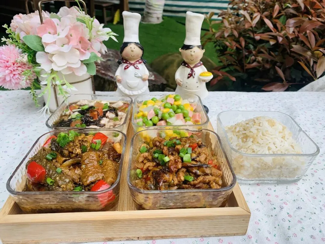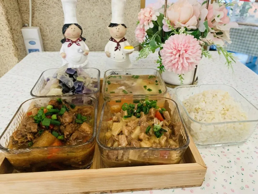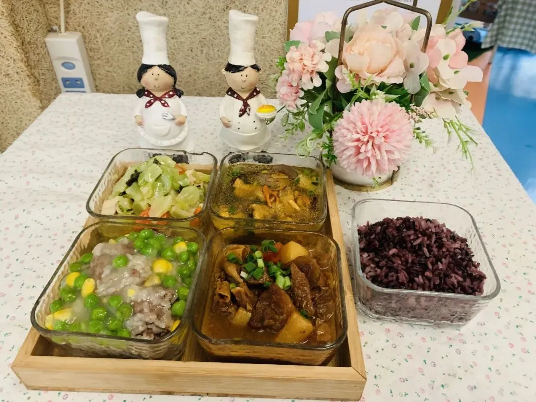 主食:高粱米饭(高粱米5g、大米托小班45g 、中班50g、大班55g)