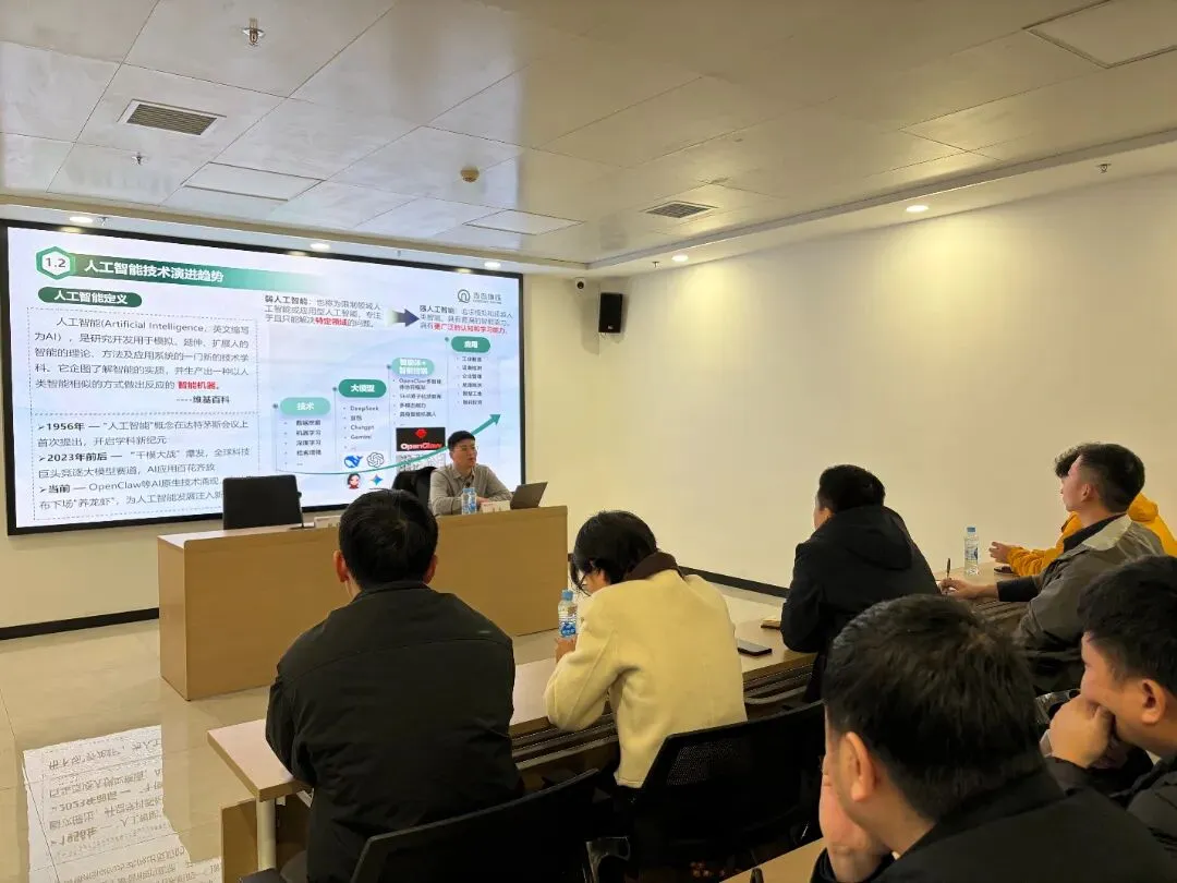 培训会上,培训老师以青岛地铁数智化实践为蓝本,围绕“人工智能+轨道交通”“人工智能+低空经济”两大领域,分享青岛地铁的创新探索思路,重点解读AI技术在轨道交通建造、运行、运维、企管全生命周期的智能体体系构建,结合实际应用案例,展示了大模型、智能体及具身智能的落地成效,为集团智慧化建设提供了可借鉴的参考范本。