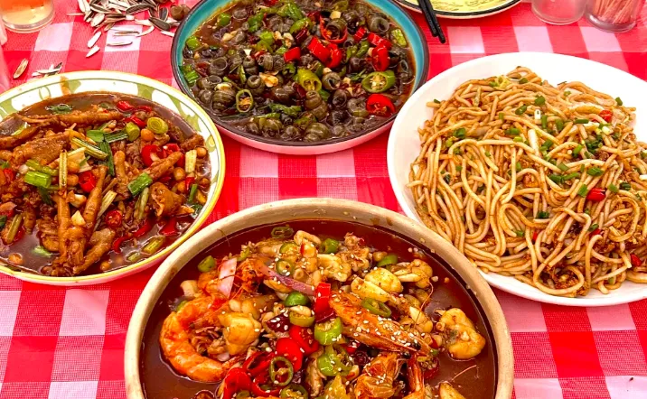 修水吃东西,路子不是花,而是实在。早上可以找家本地小店,来一笼蒸得冒白气的米粉肉,配艾米果,再喝一口热宁红茶,胃一暖,人就醒了。中午适合吃修水哨子、竹笋烧肉,笋脆,肉香,汁一拌饭,犯困都能被拉回来。晚上可以点河鲜,或者一锅土鸡汤,汤面浮着薄油,入口不腻,喝完身上都松。