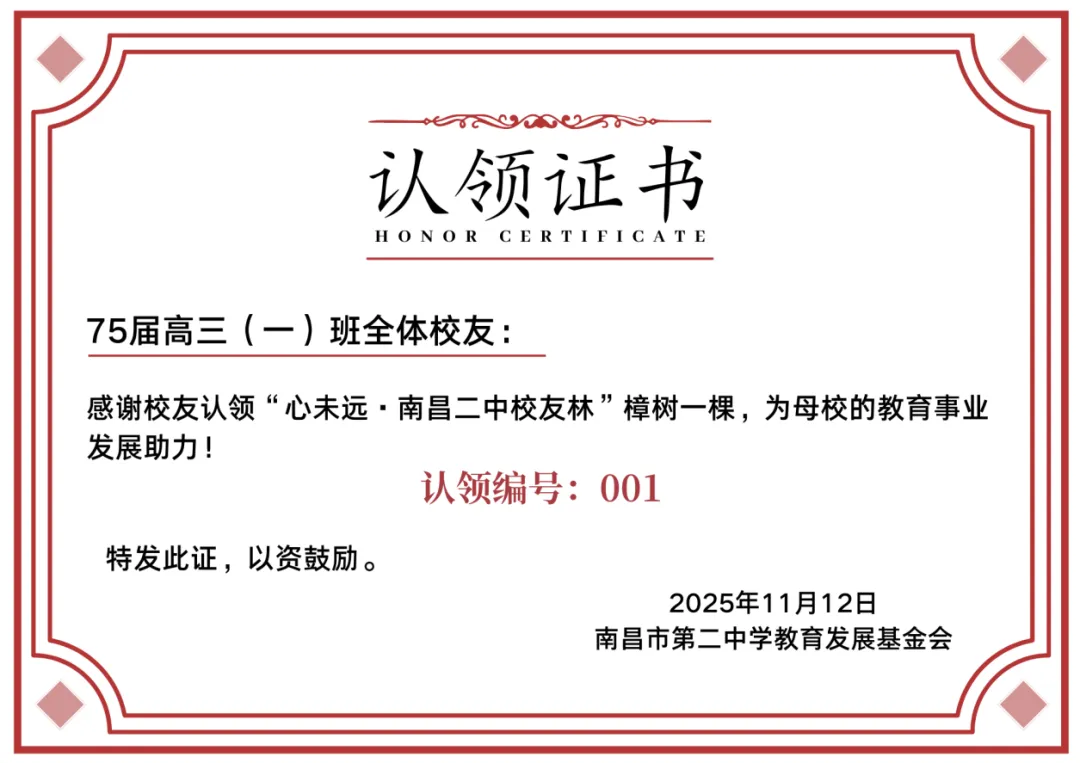 在3个工作日内,工作人员将及时与您联系参与“心未远·南昌二中校友林”项目,完成认领。