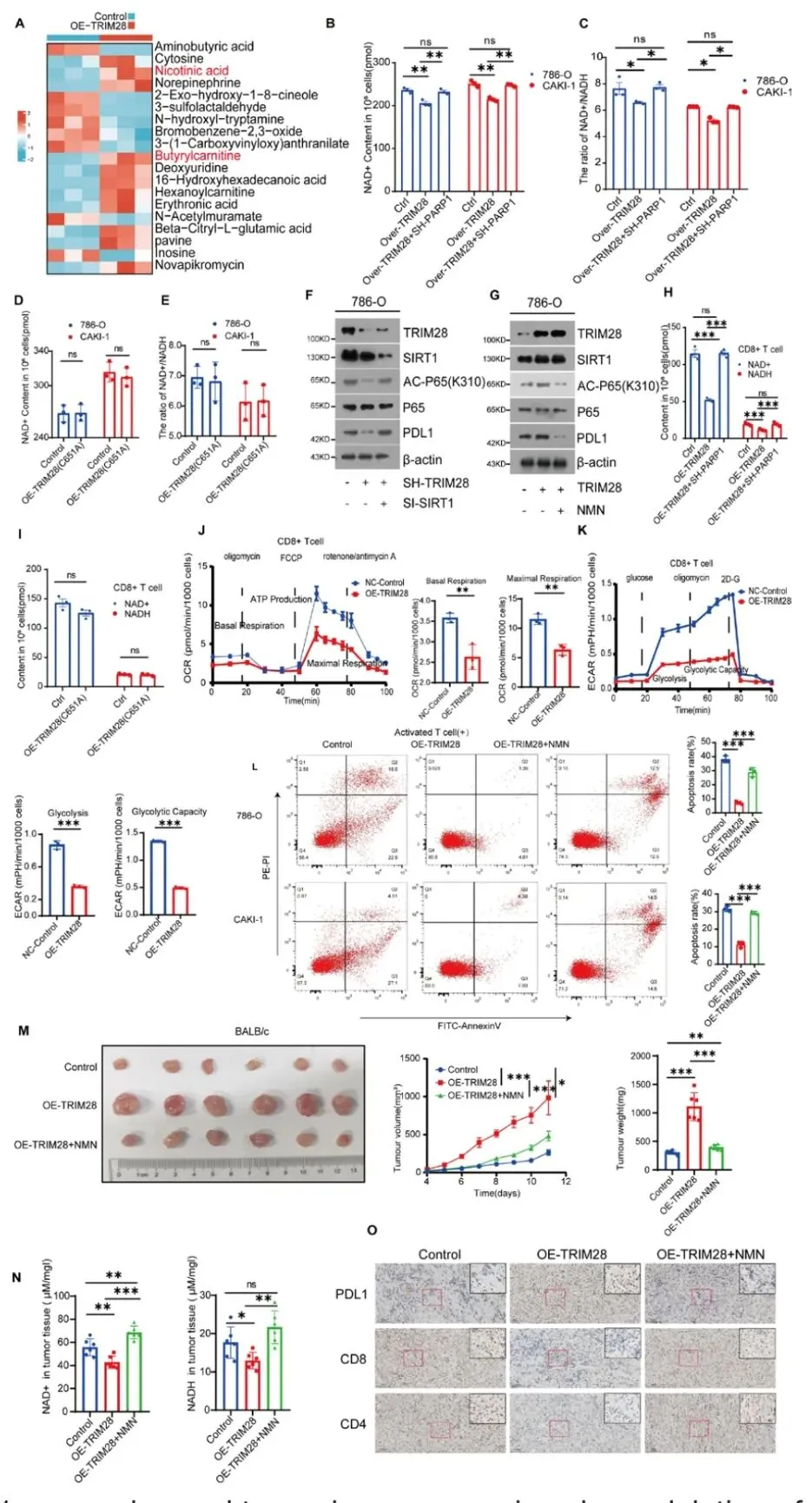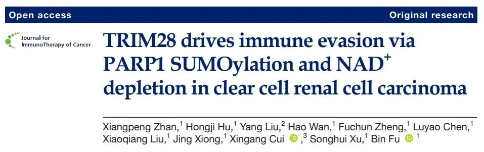 文章标题:TRIM28 drives immune evasion via PARP1 SUMOylation and NAD+ depletion in clear cell renal cell carcinoma