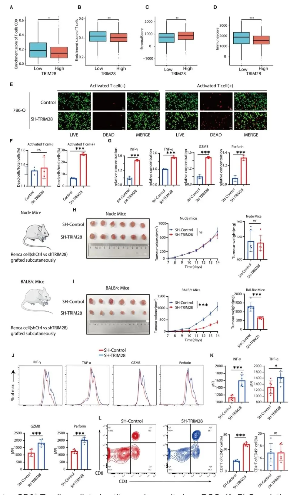 ccRCC 对 ICB 治疗响应不佳,且 CD8⁺ T 细胞高浸润与预后无关,提示存在非经典的免疫逃逸机制。SUMOylation 修饰在肿瘤免疫中发挥关键作用,但 TRIM28 作为 SUMO E3 连接酶,其在 ccRCC 免疫调控中的功能与治疗潜力尚不明确。