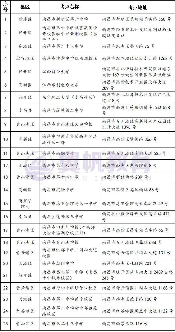 南昌市考点安排