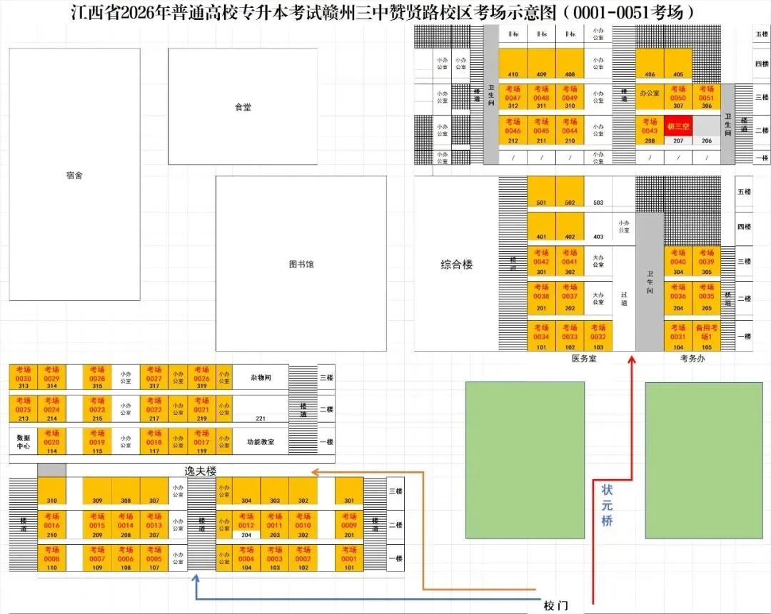 赣州三中赞贤路校区考点考场示意图