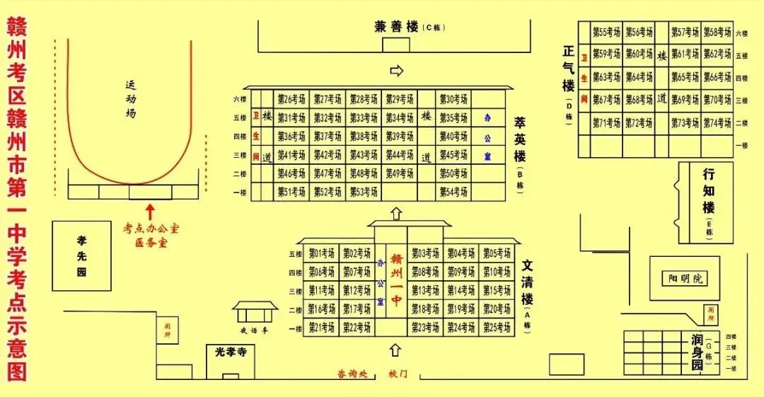 赣州中学考点考场示意图