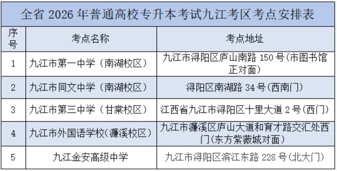 点击查看:【九江市考试地点】26年江西专升本九江考区温馨提示